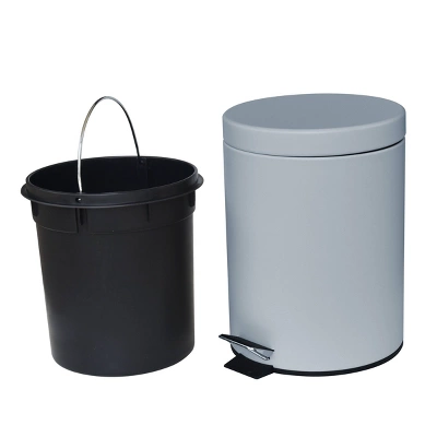 This stainless steel round step can is perfect for smaller spaces like a bathroom or an office. It features a durable steel pedal that opens the lid smoothly, and a removable inner bucket for easy trash disposal. The slow close feature is a nice, added benefit for this wastebasket. With its matte, pale grey finish, this step bin looks modern and clean in any room.