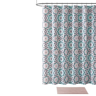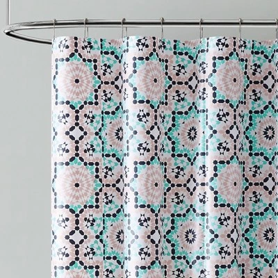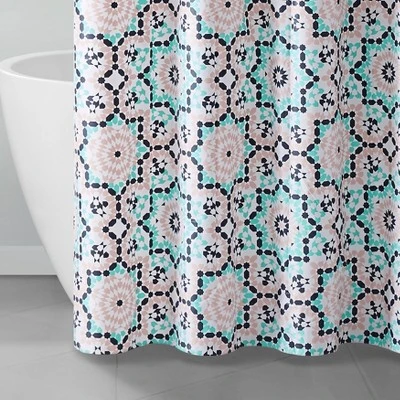 Add mesmerizing pattern to your bathroom décor with the VCNY Home 14-Piece Cora Medallion PEVA Shower Curtain Set, which features intricate tiled medallion designs. The waterproof shower curtain is made with PEVA materials that are durable, water-repellent, chloride-free, and built to last. This 14-piece bath set includes a PEVA shower curtain, shower hooks, and a polyester chenille bath rug to complete the look. You can keep the shower liner clean and looking like new by wiping it clean with a damp cloth as needed. The bath rug is machine washable for quick and easy care.