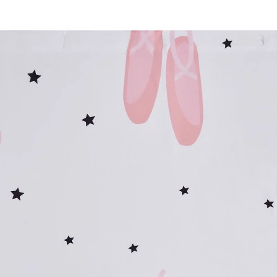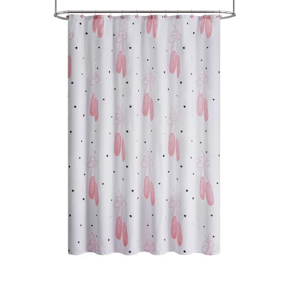 Delight the little dancer in your life with the Olivia & Finn Ballet Pink Shower Curtain Bath Set, which features pink ballet slippers and stars on a white background. This 16-piece kids’ bath set includes a shower curtain, bath rug, tumbler, soap dispenser, and shower hooks to complete the look.