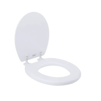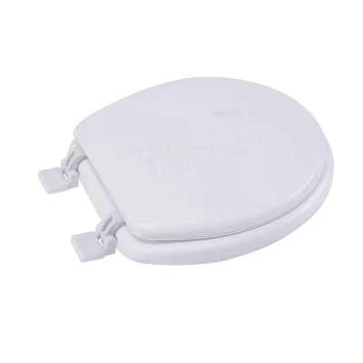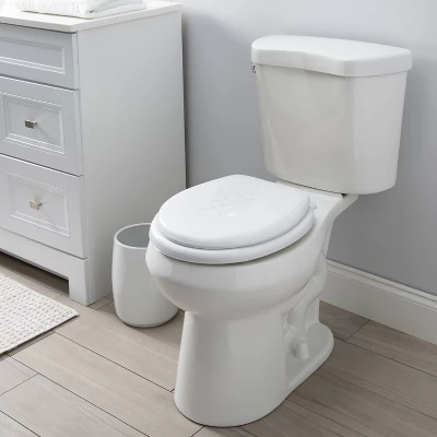 Your toilet will look brand new with the Bath Bliss beveled toilet seat. The 16.5″ toilet seat fits standard round toilets. Comes complete with all hardware for easy installation. Designed with decorative soft vinyl designed for making this seat sure to last. The adjustable non-slip hinges keeps seat in place without slide off toilet bowl. Giving your bathroom a whole new makeover, be sure to replace your toilet seat when its time for an upgrade!