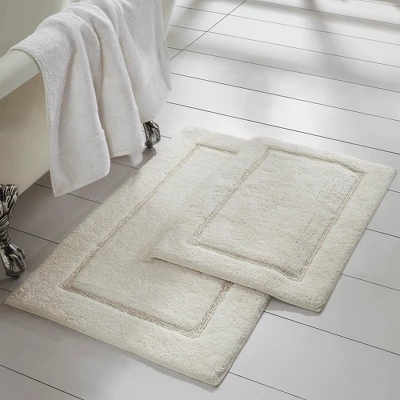 Upgrade the comfort of your bathroom by adding these two differently sized bath mats from Modern Threads. Made from 100-percent cotton for durability with daily use, the mats’ solid loop design is soft on your bare feet and highly absorbent for fast drying. A slip resistant backing keeps the bath mats safely and securely held in place. Machine washable. Please note, there might be high amount of lint on the first few washes. Set includes 2 bath mats, 17 x 24 and 21 x 34.