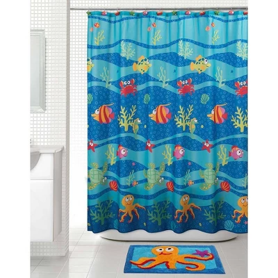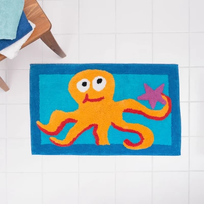 Take a trip under the sea with the Fish Tails Rug by Allure Home Creation. This Tufted Rug features a brightly colored adorable octopus against a bright blue gound which will ad a touch of whimsy to your bathroom setting. Made of 100% Tufted Cotton with Latex Backing. A coordinating Shower Curtain and Towel Set are also available. Machine wash and tumble dry on low heat.