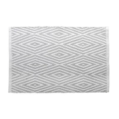 The Oxford Bath Mat by Moda, features a fun geometric pattern. This Bath Mat is woven into a diamond pattern using 2 different colors. Softly crafted from 100% Cotton. This Bath Mat is Grey and White in coloration. 20″ x 32″ in size. Available in other color’s as well. Perfect in any room of the home.