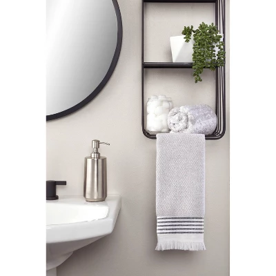 Add an elevated look to your bath with the Lincoln Park towel collection. This luxurious Turkish cotton hand towel set features two unique towel designs. One towel has a vertical striped pattern with a floral jacquard design, and the other features a decorative woven hem with fringed trim. Use them together or separately to compliment eachother. Made of Turkish cotton, which is a premium long-fiber cotton that yields stronger and smoother threads than regular cotton, it becomes even softer and more comfortable over time. Turkish towels are lightweight, yet extremely durable and super absorbent. This 2-piece set comes bundled in a decorative “for you” band which makes it great for gifting! At SKL Home we bring personality, fun, and flair to your space with the best in home décor. We’re a close-knit, small company full of big ideas in a wide variety of styles. From upbeat and modern, to classic and cozy, SKL Home has a look to complement any space. Combining 40+ years’ experience, global design inspiration, and the best fabrications, our employee-owned company continues to lead the way in home accessories.