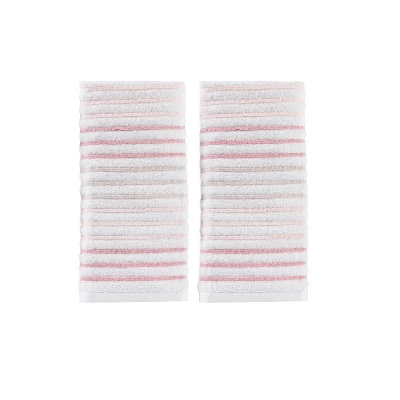 Add luxurious texture to your bathing essentials with the Tie Dye Stripe 2 PC terry hand towels. The unique design of this woven towel features tiny woven ruffled pleats in subtle pinks and pewter. These towels are durable enough for daily use and will modernize your bathroom decor. Machine wash for easy care.