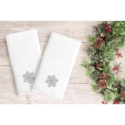 This Holiday towel set will add luxury and festive spirit to your powder room decor! Made of 100% Turkish Cotton with more cotton per square inch, these fluffy hand towels feature maximum softness and absorbency, with a fun and colorful embroidered holiday design. Each hand towel measures 16″ x 30″, and gets softer with each washing. Excellent for holiday gift giving!