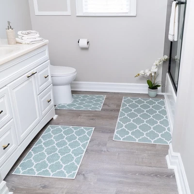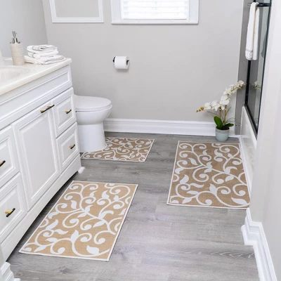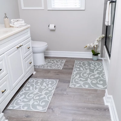 - ???? SLIP-RESISTANT FOR SAFE UTILIZATION: To prevent bathroom floor mats from skidding, they come armed with a protective non-slip backing allowing them to stay in place even during vacuuming; Our water-absorbent non slip bathroom rugs provide safety, security, and pristine hygiene