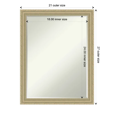 - MIRROR DETAILS: This mirror features premium glass for a clear, undistorted image and is finished with a petite 1/2-inch beveled edge which is more delicate than a traditional bevel. The overall size of this bathroom mirror measures 21 x 27 inches, including the frame. Its reflective area measures 18 x 24 inches.