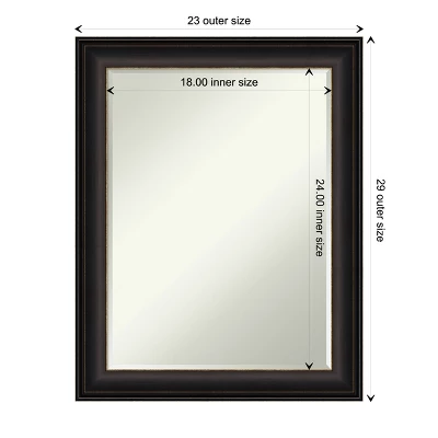 - MIRROR DETAILS: This mirror features premium glass for a clear, undistorted image and is finished with a petite 1/2-inch beveled edge which is more delicate than a traditional bevel. The overall size of this bathroom mirror measures 22.5 x 28.5 inches, including the frame. Its reflective area measures 18 x 24 inches.