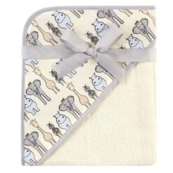 Hudson Baby Infant Boy Cotton Rich Animal Hooded Towel, White Dots Gray Elephant, One Size