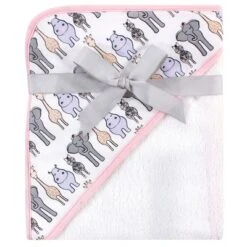 Hudson Baby Infant Girl Cotton Hooded Towel And Washcloth 2pc Set, Pink Safari, One Size