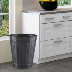 Round Premium Wicker Look Wastepaper Basket And Toilet Brush Set Gray – Mind Reader
