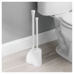 Toilet Brush & Holder With Self Closing Lid With Soft Bristles White – Bath Bliss