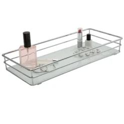 Vdomus 15.2″ X 4.5″ Rectangular Wall Mounted Glass Bathroom Shelf With Hand Towel Bar, Clear
