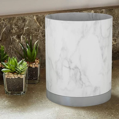 Misty Silver collection is Made out of resin and metal. Resin look is inspired from the Italian marble Satvario. Metal part is in satin nickel finish. Perfect for end tables, night stands, counter tops, vanities and desks throughout your home. This bath accessory set is sure to elevate the look of any bathroom decor and also add functionality and durability.