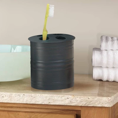 nu steel Toothbrush Holder holds up to 4 toothbrushes, including spin brushes and kids’ toothbrushes. Its clean design features an Oil Rubbed Bronze finish to compliment any bath décor. Perfect for end tables, night stands, counter tops, vanities and desks throughout your home. This bath accessory set is sure to elevate the look of any bathroom decor and also add functionality and durability.
