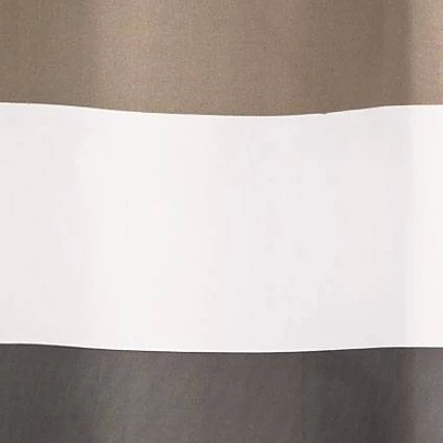 The Cabana fabric shower curtain by Moda, features wide horizontal stripes in natural tones. With it’s subtle coloration, the Cabana shower curtain will easily compliment any bath décor. Providing function and fashion. Made of 100% Polyester. This shower curtain is durable and Easy Care. Machine washable. Shower Curtain Liner and Hooks not included.