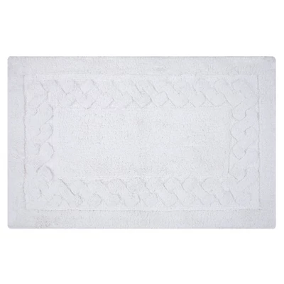 Luxurious and super soft, this cotton bath rug with a non-skid back in an all-over chain border design is a fine addition to your bathroom décor. This luxurious bath rug is made with 100% soft plush cotton. It’s super soft to the touch with a dense lush pile. It’s the ultimate in comfort while being extremely absorbent and functional. The elegant range of contemporary colors will enhance any bathroom decor. Color: White. Available sizes: 17″ x 24″, 20″ x 30″, 21″ x 34″, and 24″ x 40″.