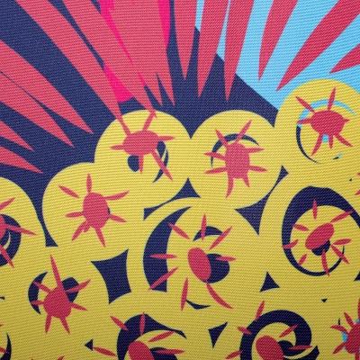 The Crysanthemum Fabric Shower Curtain by Moda, boasts a large artistic floral pattern that has a feel of the tropics. This fun shower curtain easily adds a pop of color to your washroom space. The Crysanthemum shower curtain is easy-care, Machine Washable. Made of 100% Polyester. We recommend the use of a liner with this product.