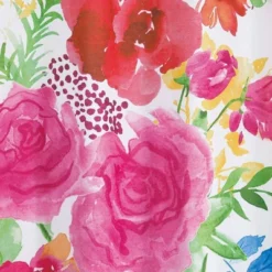 Fill your bath space with welcoming, summery vibes with the Floral Burst Shower Curtain from Allure Home Creations. Featuring colorful, watercolor-like blooming floral prints, this printed shower curtain brings the beauty of nature to your daily wash routine, while draping around the bathtub and shower stall area to prevent water from splashing the floor and walls. Constructed from a durable and water-resistant fabric, this decorative shower curtain features a reinforced header for extra strength and lasting use, while the buttonhole top makes it easy to hang.