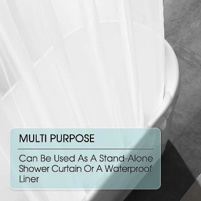 Protect your shower curtain or hang this beautiful shower curtain liner all on its own for a perfect look. Heavy duty 10 gauge PEVA is super sturdy and has absolutely no toxic odor and is also mold & mildew resistant. Metal Grommets and a mesh sheer header will protect your liner from tearing.