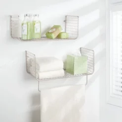 - Wall mounted design for bathroom convenience and organization. Complements popular bath hardware, allows a complete bathroom refresh.