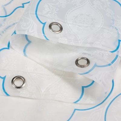 Add this cute and fun shower curtain by Kate Aurora to any bathroom to instantly add a pop of color. Features twelve metal grommets to prevent the curtain from tearing. Material is an eco friendly PEVA vinyl. Odor & chlorine free. Non Toxic.