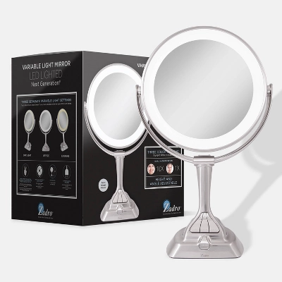 Zadro’s 10’’ Round 3-Way LED Rotating Mirror gives endless options for creating the best beauty looks in any lighting. Dual 10X/1X magnification and optical quality glass gives crystal clear viewing of your entire face and hair. The ultra-bright LED lighting features three adaptive color settings of Daylight (natural sunlight), Office (cool white) and Evening (warm white), so you can create color-correct makeup looks depending on where you’ll be going. Use the multi-functional Smart Dimmer control pad to fully adjust the light’s brightness and switch between each lighting color, then effortlessly switch between each magnification side using the 360-degree endless mirror head rotation.