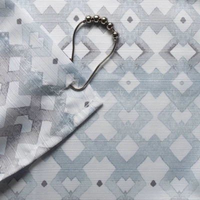 The MAYA fabric shower curtain, is created on subtle slub fabric with designer neutral grey and blue colorations. The slub fabric provides this shower curtain with a soft textured base. The MAYA curtain features a classic yet modern pattern blending easily with various décor styles. The Maya shower curtain has Buttonhole construction, made of 100% Polyester and is easy care – machine washable.