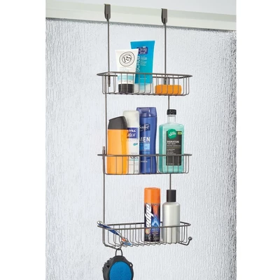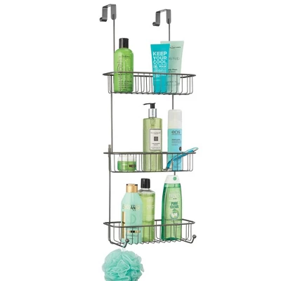 Keep all of your shower needs close by with the Over the Door Shower Caddy from mDesign. This long caddy maximizes vertical storage opportunities in even the smallest of shower stalls. Just hang this over the shower door and you are ready to go. The deep baskets keep showering essentials organized and hooks (both inside and outside of the shower) provide opportunities to keep washcloths and towels close at hand.