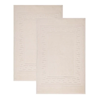Elevate the look of your bathroom or powder room with the Soares 2-Piece Bath Mat Set. The highly absorbent Cotton material brings ultra-soft comfort keeping your feet toasty warm and your floors clean. This lovely pair showcases a beautiful meander border that will bring classic style and elegance to your bathroom dcor. Perfect for everyday use, this machine washable set features an ultra-plush underfoot so you can enjoy cloud-like comfort when you step out of your shower or bath.