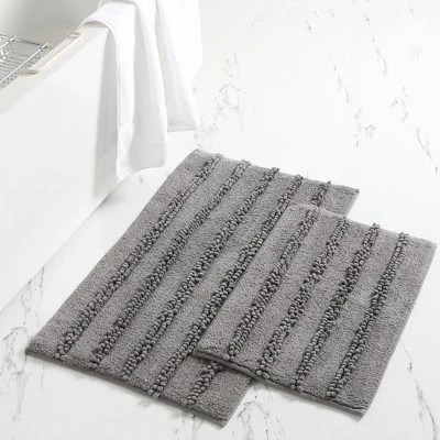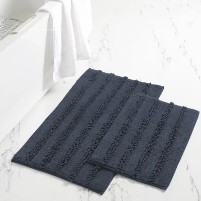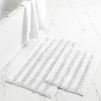Pamper your feet by stepping out of the shower and onto luxury with the soft 2-Pack Chenille Noodle with non-slip backing bath mat set by Amrapur Overseas. This set includes 17×24 inch & 21×34 inch bath rug which are not only comfortable to the touch but are also absorbent and durable. These bath mats are additionally available in a variety of colors, making these stylish rugs suitable to compliment any bathroom decor.
