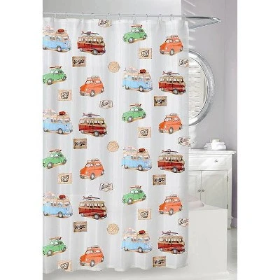 Get ready to hit the road! On the Road shower curtain by Moda adds that sense of whimsy to your bathroom space. This shower curtain is printed with fun colors. Works well for children’s or adults spaces. Made of 100% PEVA, and is waterproof. Easy Care, PEVA Shower Curtain – no liner required here.