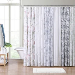 Laura Ashley Adelina 100% Cotton – Shower Curtain, White- 72″ X 72″