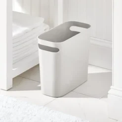 MDesign Slim Plastic Small Trash Can Wastebasket With Handles, 2 Pack