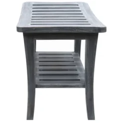 Transform any room in your home with the Redmon Contemporary Teak Wood Bench. Crafted from the finest quality teak wood, this versatile bench combines form and function for a luxurious feel.The compact size makes this bench ideal for smaller spaces, while the unique wood grain pattern with warm, rich color gives the bench a timeless and elegant look that is perfect for any decor style. Not only does this accessory piece provide elegance, but it’s also designed with your comfort and safety in mind. With sturdy construction, you can ensure yourself a stable and secure bench that enhances your space. The durable, natural teak wood is weatherproof, making it the addition you’ve been looking for that will last many years. For versatile use, take the bench outdoors and be sure that it will withstand the elements. Don’t settle for a basic decor piece, and add comfort and versatility with the Redmon Contemporary Teak Wood Bench.