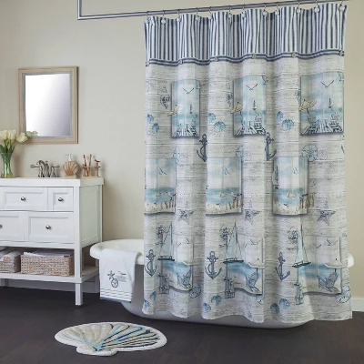 Bring life at sea to your home or beachside getaway with Sea Drift. This lightweight woven shower curtain features a nautical seaside print with decorative button trim. 12 button-holes line the top for easy hanging. Use of a liner is recommended; liner/hooks sold separately. Shop the coordinating Sea Drift collection to complete the look. SKL Home by Saturday Knight Ltd. brings personality, fun and flair to the most intimate spaces in your home with products ranging from bath accessories and shower curtains, to towels, curtains and beyond. Whether your style is upbeat and modern, or classic and cozy, SKL Home provides a look to compliment almost any decor. Combining 40+ years’ experience, global design inspiration and premium fabrications, SKL Home continues to lead the way in home accessories.