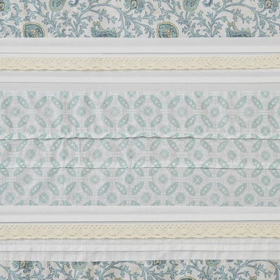 For a charming and stylish touch to your bathroom, our Stella cotton shower curtain holds all of the perfect elements to do shabby chic the right way. A mixture of soft hue are printed in a paisley design alongside pin tucked and beautiful lace taping for a delicate and feminine update. Finished with 12 button holes at the top makes this shower curtain easy to assemble hooks and simply hang on any standard rod (hooks and rod not included). This shower curtain is also OEKO-TEX certified, meaning it does not contain any harmful substances or chemicals, ensuring quality comfort and wellness. Each shower curtain measures 72×72″ and is machine washable for easy care; to keep this shower curtain in the best condition a water repellant liner is highly recommended (liner not included and should be purchase separately).
