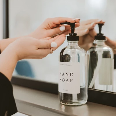 - CUTE & STYLISH – This clear glass bottle will make the perfect addition to enhance your bathroom or kitchen. The label features a cute hand-lettered design to give your home a unique and cozy feel.