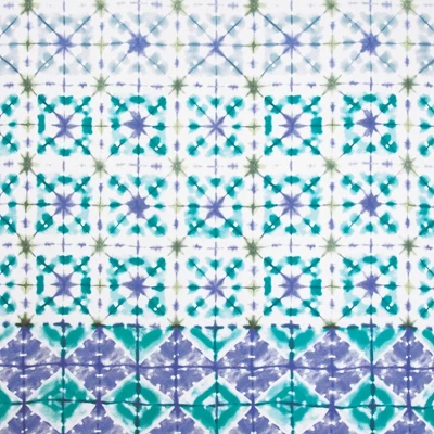 Transform your bathroom into a calm and serene sanctuary with the Tie Dye Shower Curtain by Allure Home Creation. This updated medallion design is printed on 100% easy care plain weave polyester in a soothing blend of gradated painterly blues with pops of green. It measures 70″ x 72″ and will fit most standard sized tubs and shower areas. The reinforced buttonhole top works with standard shower hooks and curtain rods. Not only will this shower curtain fashionably dress your bathroom, but it will also help prevent water from splashing outside of your tub or shower stall. Use of a liner is recommended. Use alone or coordinate with other matching pieces in the Tie Dye Bath Collection. Machine wash cold and tumble dry on low heat.