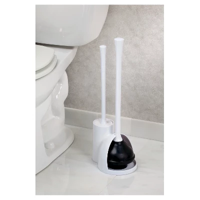 - SLIM BRUSH AND PLUNGER SET: Toilet bowl brush and plunger combo set is constructed of durable glossy white plastic and is perfect for cleaning and maintenance in your bathroom. Ideal for master bathroom, guest bathroom, kid’s bathroom, office bathroom, and more!