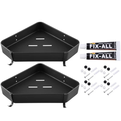 Item Function: 1. A simple and classic appearance can match your different home styles. Make your life more convenient and easier. 2. You can place toiletries in the bathroom or seasoning bottles in the kitchen. 3. Good material, ensuring the beauty, durability, and good quality of the corner shower shelf. 4. Easy installation, drilling design, exquisite workmanship, not easy to fall off. 5. High load-bearing, rust-proof, and moisture-proof, stable and not easy to fall off. 6. Easy installation. Works on smooth or rough surfaces. 7. Note: Please note that it is not suitable for painting walls, wallpaper, and plaster walls. Please allow slight measuring deviation due to manual measurement. Specification: Product Name: Shower Caddy, Material: Carbon Steel, Quantity: 2 Set, Size: 24.3×24.3x5cm / 9.57″x9.57″x1.97″(L*W*H); Package List: 2 Set Bath Corner Shower Shelves Adhesive Caddy with Hooks.