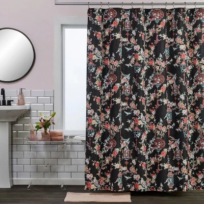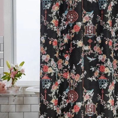 Floral Lanterns is part of the Vern Yip by SKL Home Collection. This collaboration with famed interior designer, Vern Yip, and SKL Home, brings a modern twist to traditional patterns, mixing fashion and function. The Floral Lanterns collection brings an Asian influence to the bath, the shower curtain featuring a colorful burst of flowers amongst tiny birds and hanging lanterns. This lightweight fabric design is easily machine washable and has 12-button holes along the top for easy hanging. Use of a liner is recommended; liner/hooks sold separately. Shop the full Floral Lanterns collection to complete the look.