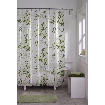 Invite a calm meditative feel into your shower with the Zenna Home Zen Garden PEVA Shower Curtain. This stylish bathroom shower curtain features a pattern of bamboo palm leaves on a frosted background. The 100% PEVA curtain is waterproof, odorless and easy to clean (just wipe with a damp cloth). It features 12 buttonholes at the top that make it easy to install using your choice of any shower rings or hooks.